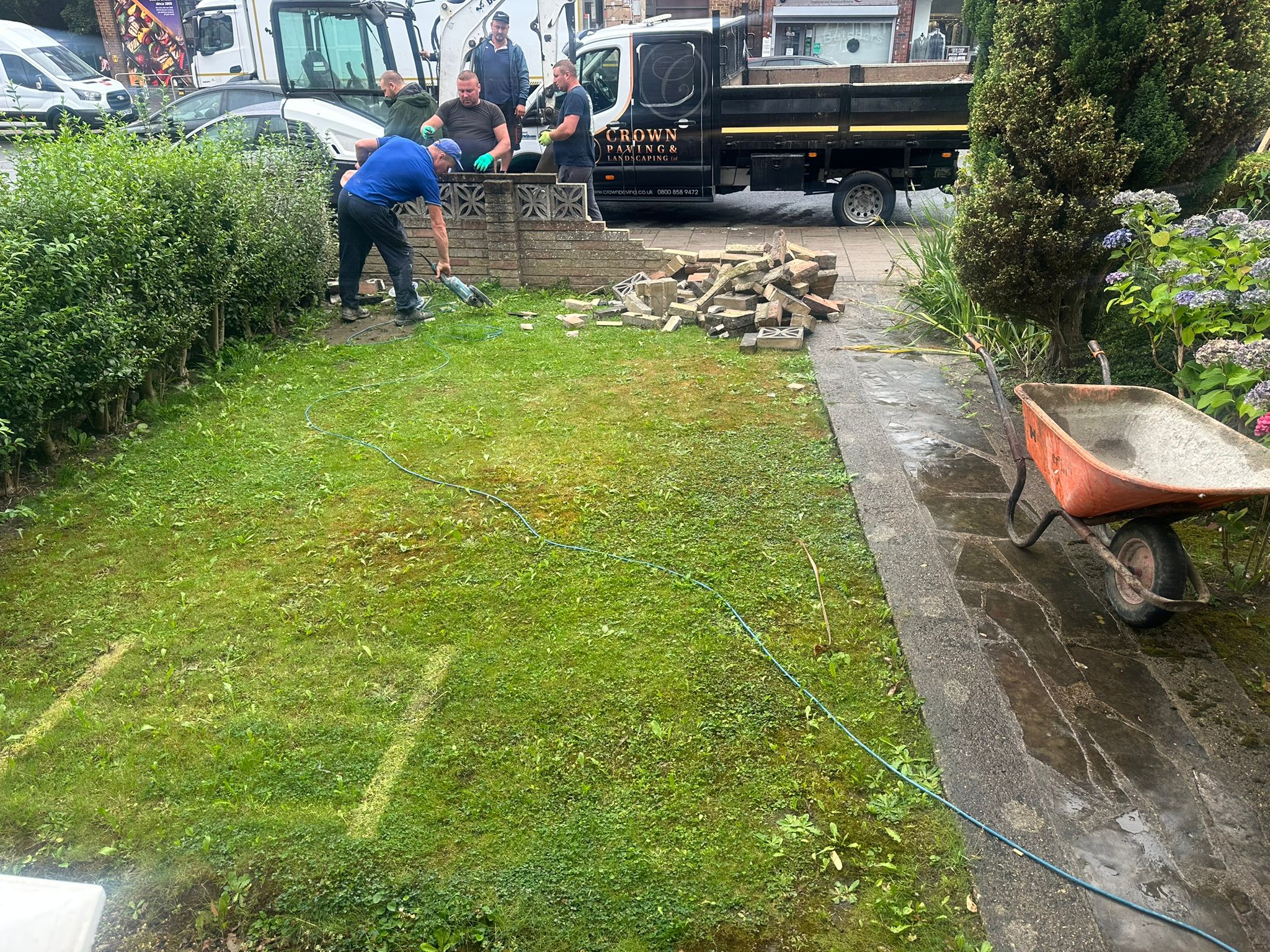 This included removing the old turf and hardcore, installing a Type 2 sub-base, and compacting a solid layer of MOT Type 1 hardcore—creating a strong and stable foundation for the paving slabs.